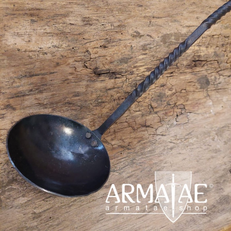 Die am Schöpfer belassene Zunderschicht verleiht diesem Küchenutensil ein authentisches, antikes Erscheinungsbild.
