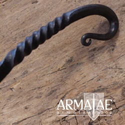 Der schön geschmiedete, tordierte Griff ist ca. 30 cm lang und besitzt am Ende einen formschönen Haken.
