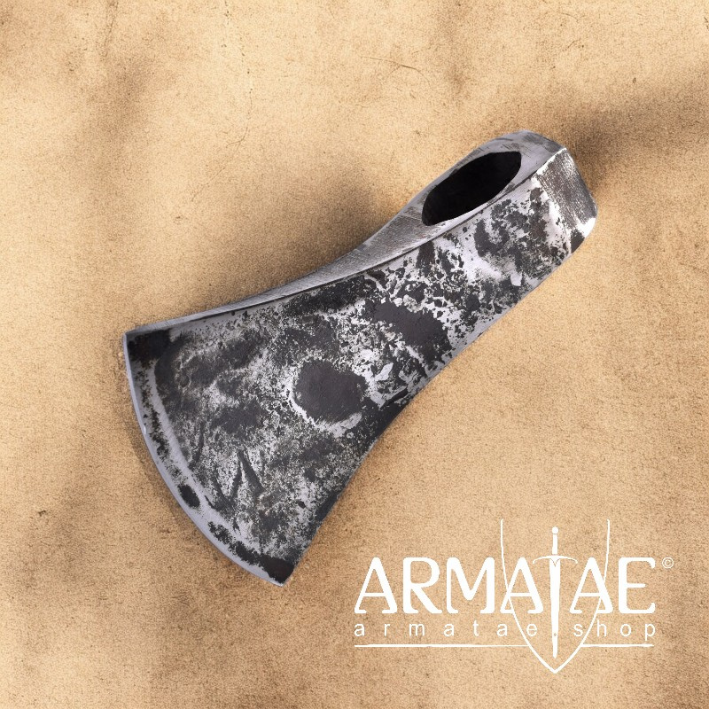 Von Hand aus einem Stück hochwertigem Kohlenstoffstahl rustikal geschmiedetes Schaukampf Axtblatt mit sehr schöner rustikaler Optik, welche dem Beil mit den sichtbaren Hammerspuren ein sehr authentisches Aussehen verleiht.