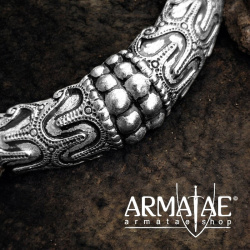 Im Gegensatz zum Original ist dieser Wikinger Armreifen auf der Unterseite geöffnet, so wie es auch in der Wikingerzeit häufig üblich war. Bedingt durch die Größe eignet sich dieser Armreifen für eher große Männerarme.