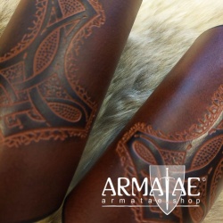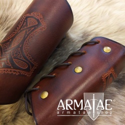 Sehr schöne, aus hochwertigem Büffelleder von Hand gefertigte Armschützer mit großer Prägung, wunderschön koloriert.
