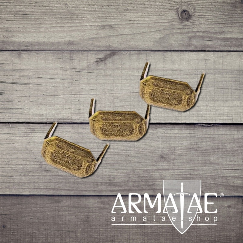 Sehr praktische und optisch zierende Doppelkrallen Nieten mit edler Antik Messing / Bronze Oberflächenversiegelung. Ideal um z.B. Lederschlaufen zu verbinden (siehe Bilder).