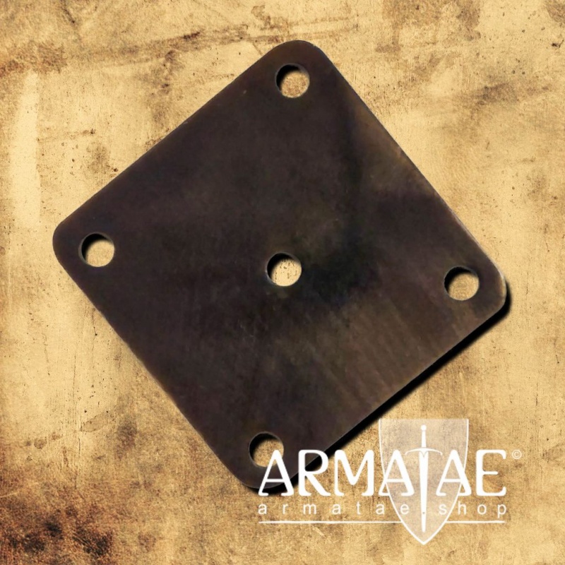 Das mittelalterliche Webbrettchen ist aus einem Stück Horn gearbeitet und sorgfältig geglättet. Die Maße des Webplättchens betragen 4,5 x 4,5 cm, mit fünf Löchern von je 5 mm Durchmesser.