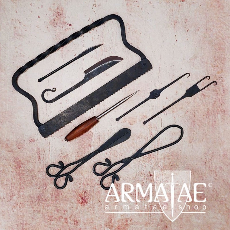 Wichtiger Hinweis: Alle Teile sind sehr realitätsnah ausgeführt, die Messer sind sogar geschärft. Bevor das Wundbesteck bei Mittelalter Aufführungen, Theaterstücken, Verfilmungen etc. an Mensch und / oder Tier zum Einsatz kommt, müssen alle Teile verletzungssicher gemacht werden. Die Haftung liegt wie immer beim Anwender.