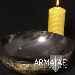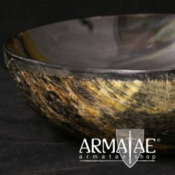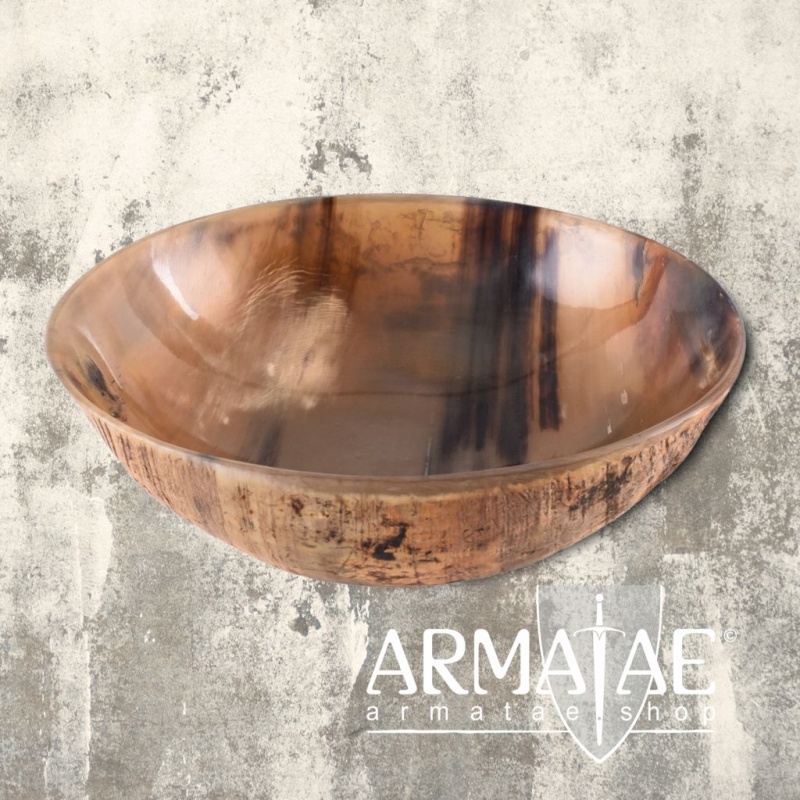 Von Hand gefertigte Schüssel aus reinem polierten Horn, der Kunststoff der Antike und des Mittelalters, ideal für das Lagerleben. Die Schüssel ist sehr leicht und braucht kaum Platz und ist gegenüber Keramik oder Glas sehr bruchfest.