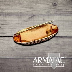 Äußerst formschöne, elegante Buckelfibel, eine sehr gelungene Nachbildung einer Schalenfibel aus Norwegen. Sehr ähnliche Funde sind auch aus Oldenburg und Bornholm bekannt und werden auch als Ovalfibel bezeichnet.