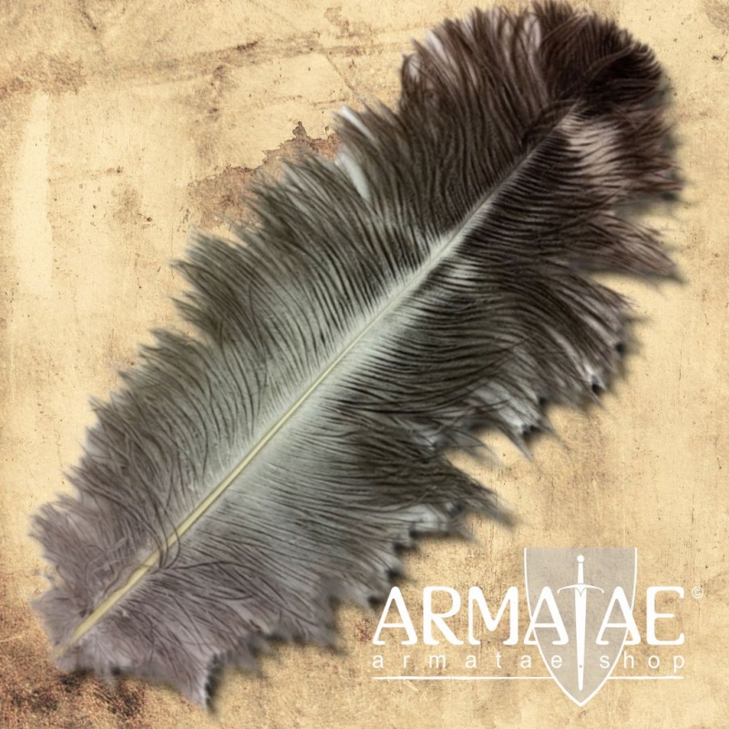 Eine Straußenfeder in natürlicher Farbgebung. Die Farbnuancen variieren von Grau, Braun, Beige bis beinahe Weiß. Die Federn sind gewaschen & desinfiziert und eigenen sich für vielerlei Anwendungen.
