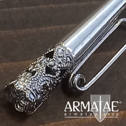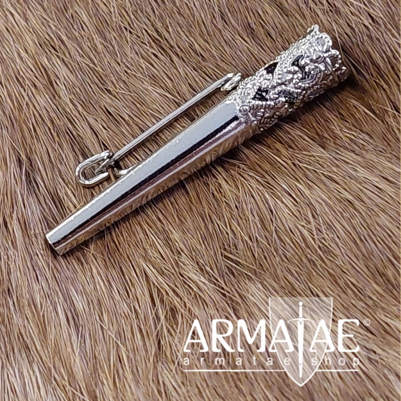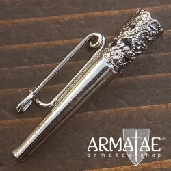Eine schöne, zierende Federhülse mit Sicherheitsnadel zum sicheren und einfachen befestigen einer Feder oder eines Federgesteckes deiner Wahl am Hut oder Barett.