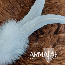 Die eine linke und eine rechte Hahnenfeder ist jeweils zwischen 30 und 35 cm lang.
