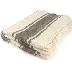 Herrliche aus Schurwolle vom Bergschaf handgewebte Decke mit 140 x 220 cm mit breiten dunklen Streifen. Die Färbung ist rein natürlich durch Auswahl der Wolle.