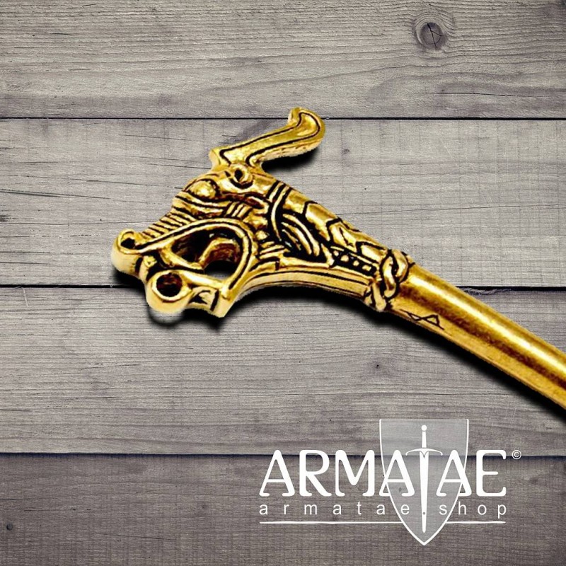 Diese sehr schöne und authentische Replik einer Wikinger Gewandnadel ist eine gelungene Reproduktion der Gewandnadel aus der Wikinger Stadt Haithabu, welche bei Ausgrabungen im Hafenbecken gefunden wurde.