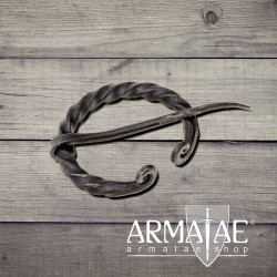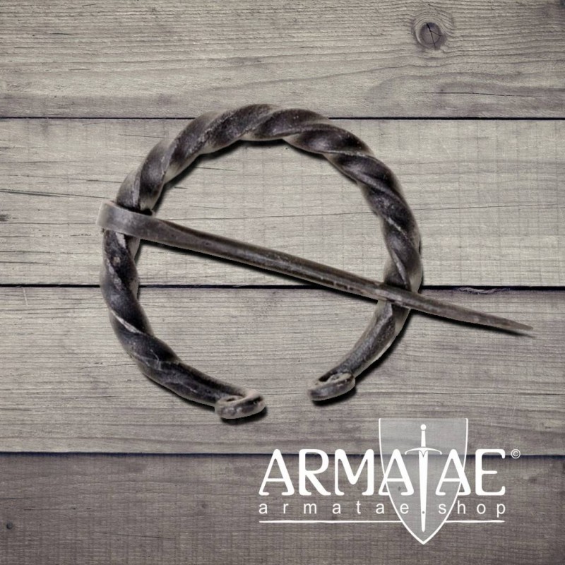 Klassisch tordierte, von Hand geschmiedete Ringfibel. Ringfibeln werden auch als Omegafibel oder Hufeisenfibel bezeichnet und waren über 1000 Jahre Geschichte in Verwendung, auch schon bei den Römern und den Germanen. Kleine Omegafibeln wurden von den Wikingern auch verwendet, um die Wadenwickel sicher zu fixieren. So gesehen handelt es sich bei einer Fibel einfach um eine zierende Sicherheitsnadel, bzw. dem historischen Vorläufer einer modernen Sicherheitsnadel.