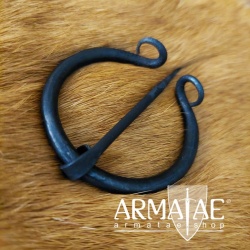 Rein von Hand gefertigte Mittelalter Fibel aus Schmiedeeisen. Bei Enden stehen im rechten Winkel zur Fibel und wurden liebevoll ausgeschmiedet und gerollt.