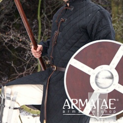 Ein Gambeson mit hohem Schutz. Außen mit stabilem Segeltuch aus 100 % Baumwolle, fest gefüllt mit 2 Lagen aus 100 % Wolle und perfekt über Kreuz abgesteppt, was ein schönes Rautenmuster ergibt und innen komplett mit einem weichen 100 % Baumwollstoff gefüttert.