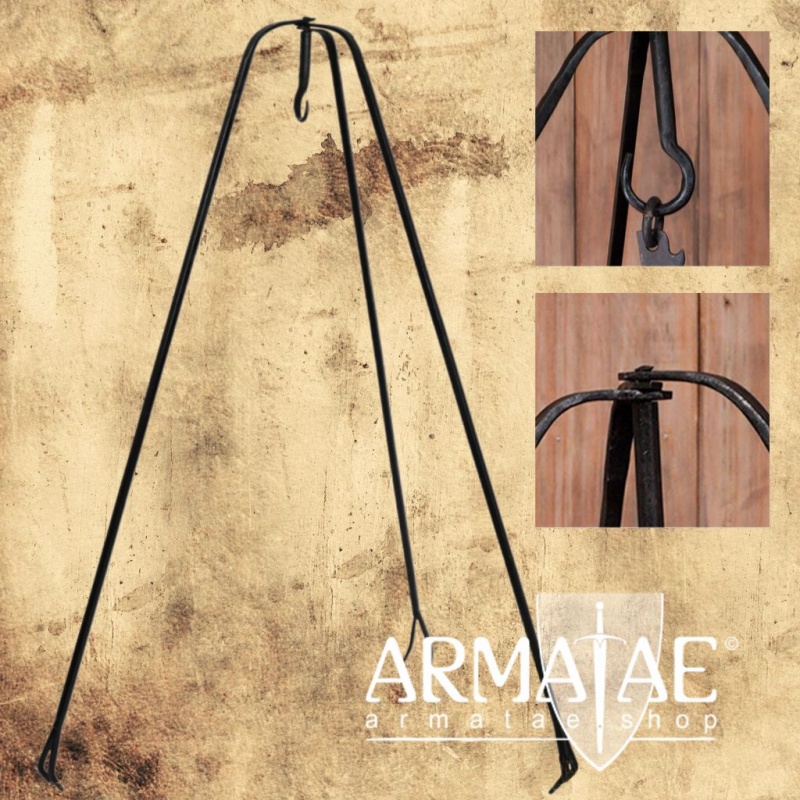 Dieses von Hand geschmiedete Dreibein besitzt zentral einen massiven Haken und Doppelkrallen-Füße, womit das Dreibein in jeder Wiese perfekt steht.