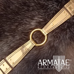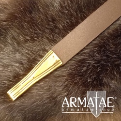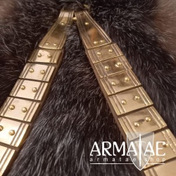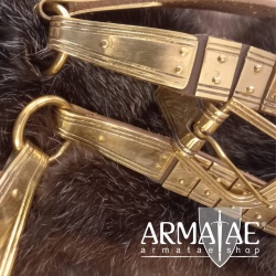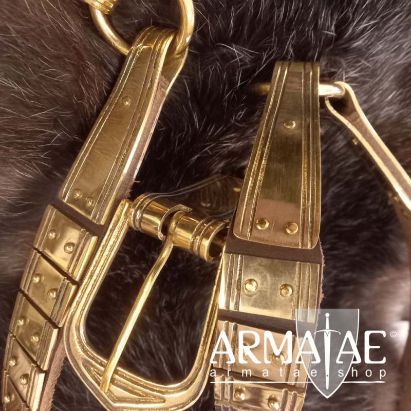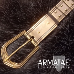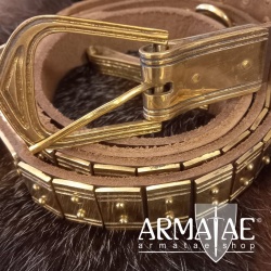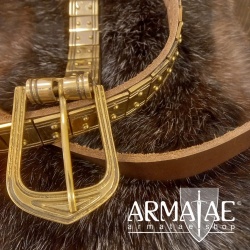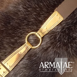 Die massive Ausführung mit der großen Schnalle, den 5 Riemenzungen, den zwei stabilen Ringen und den 48 Messingplatten diente dazu, zu verhindern, dass im Kampf der Gegner den Gürtel mit einem Schwerthieb durchtrennen konnte.