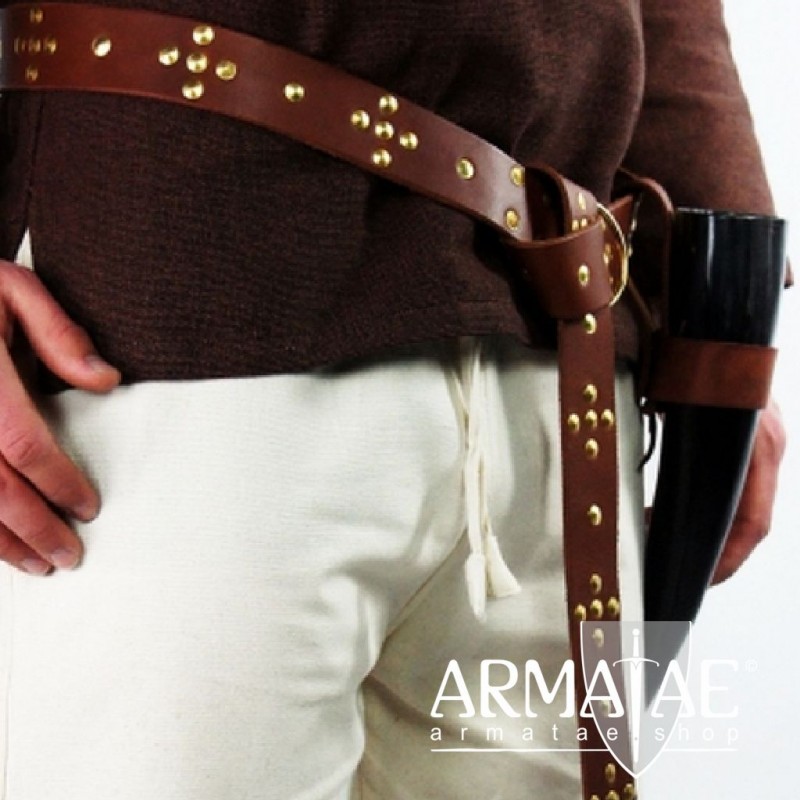 Dieser Gürtel ist auf die gesamte Länge mit Nieten besetzt und ist für die im Mittelalter gewohnte Knotentrageweise zu verwenden, besteht aus robustem Rindsleder und wird in 2 Längen angeboten.