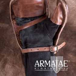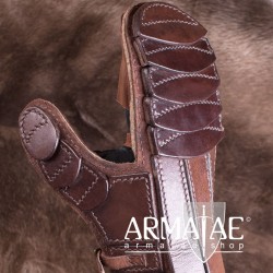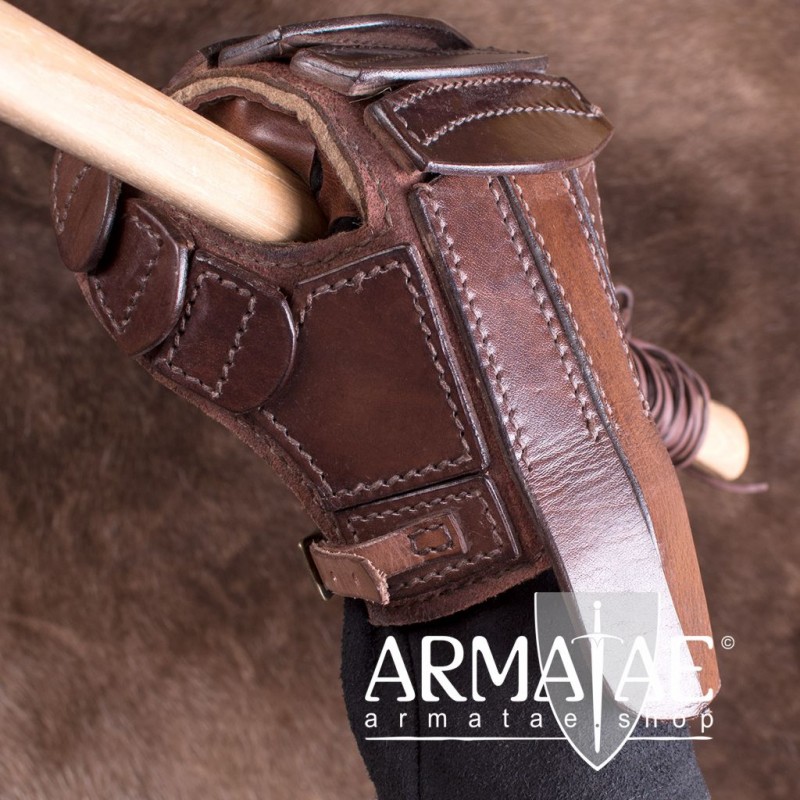 Sehr hochwertiger, speziell fĂĽr den Schaukampf entwickelter Handschutz aus bestem Leder. Die ca. 5 mm starken ĂĽberlappenden Lederschuppen schĂĽtzen deine Finger und den HandrĂĽcken vor Schnitt- und Platzwunden.