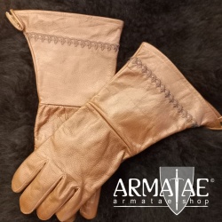 Sehr schöne, geschmeidige Renaissance Leder Handschuhe mit langer breiter Stulpe, welche umlaufend bestickt ist.