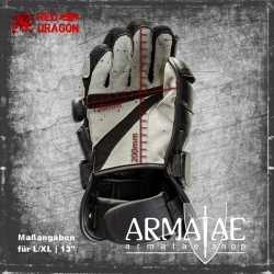 L/XL (13") Handschuhgröße ca. 10 bis 11 =  L 185 - 205 mm vom Beginn der Handfläche bis zur Spitze des Mittelfingers und Handbreite mit angelegtem Daumen in Knöchelhöhe 115 - 125 mm.