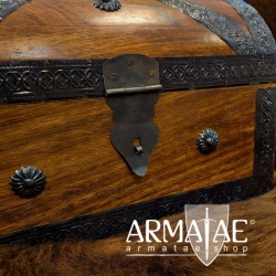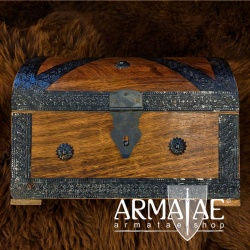 Massive Holztruhen aus geflammtem Mangoholz, mit Metall-Beschlägen opulent verziert. Eine dekorative sowie praktische Geschenkidee für allerlei Krimskrams etc.