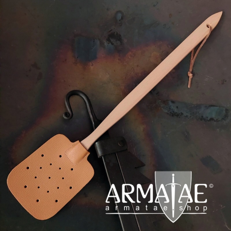 Rustikale, plastikfreie sowie sehr robuste Fliegenklatsche mit Buchenholzstiel und gelochtem Lederlappen.