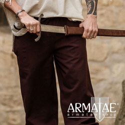 Robuste, angenehm zu tragende Mittelalter-Hose aus starkem, markanten Baumwollgewebe. Die Hose besitzt 2 dezente Einschubtaschen. Der elastische Bund mit zusätzlichem Tunnelzug lässt sich in der Weite sehr gut anpassen. Die Beinenden sind ebenfalls mit Tunnelzügen ausgestattet.