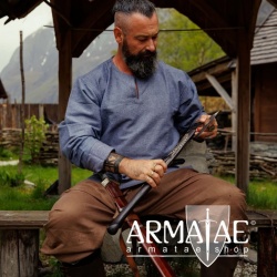 Unterhalb des Knies verengt sich die Hose und kann geschnürt werden. Rushosen werden oftmals zu einer authentischen Wikinger Darstellung mit Wadenwickeln kombiniert.