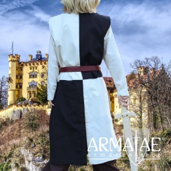 Der Waffenrock ist an beiden Seiten bis zur Hüfte geschlitzt und weist auch vorne und hinten 2 weitere Schlitze auf, welche für größtmögliche Beinfreiheit sorgen.