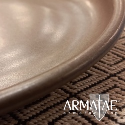 Ein Teller mit einem Durchmesser von 22 cm. Der Teller ist sehr robust, mit verstärktem Rand gefertigt und eignet sich durch den steil auslaufenden Rand auch für Gulasch, Eintöpfe etc. Perfekt für das Mittelalter Lager oder einfach daheim, aber auch in der Gastronomie.
