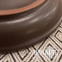 Eine sehr robuste, bei 1.120 °Celsius gebrannte Ware aus dunklem Ton, glasiert in der Farbe Toledo, welche je nach Brand und Auftrag zwischen Anthrazit und Dunkelbraun alterniert, wobei zudem auch der Lichteinfall die Farbe leicht variieren lässt. Angenehm griffige Haptik.