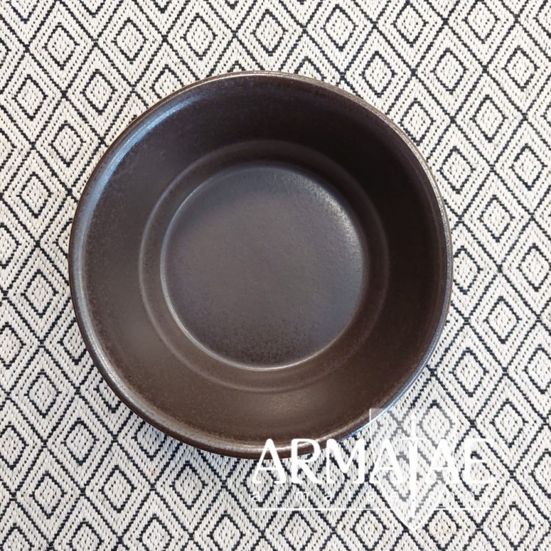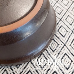 Eine sehr robuste, bei 1.120 °Celsius gebrannte Ware aus dunklem Ton, glasiert in der Farbe Toledo, welche je nach Brand und Auftrag zwischen Anthrazit und Dunkelbraun alterniert, wobei zudem auch der Lichteinfall die Farbe leicht variieren lässt. Angenehm griffige Haptik.