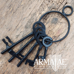 Diese fünf massiven Stahlschlüssel inklusive großem Ring sind je ca. 7 cm, 10 cm, 12,3 cm, 13,7 cm und 14,6 cm lang.
