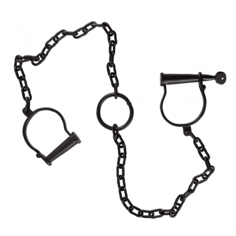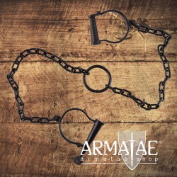 Authentische und voll funktionsfähige Fußschellen oder Beinschellen gefertigt aus solidem Stahl. Der in der Mitte befindliche Ring diente dazu, eine Kette hindurchzuziehen, damit wurden Reihen von z.B. auf Schiffen zum Rudern verdonnerte Sträflinge am Platz gehalten und konnten die Ruder ungehindert bedienen.