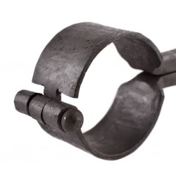 Die Handschelle besteht aus drei Teilen handgeschmiedetem Flachstahl, an den Enden sind beiderseits Scharniere angeschmiedet. Die Schellen sind voll funktionstauglich. Sie können einfach mit einer Schraube mit Mutter oder mit einem mittelalterlichen Vorhängeschloss verschlossen werden.
