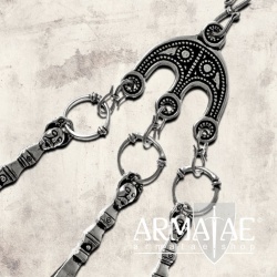 Hier bieten wir ein komplettes Wikinger Toiletten-Set bestehend aus der detailgetreuen Replik einer mehrgliedrigen Stab-Kette samt kunstvollem Kettenverteiler sowie drei Hygiene-Anhänger nach wikingerzeitlichen Funden auf Gotland.