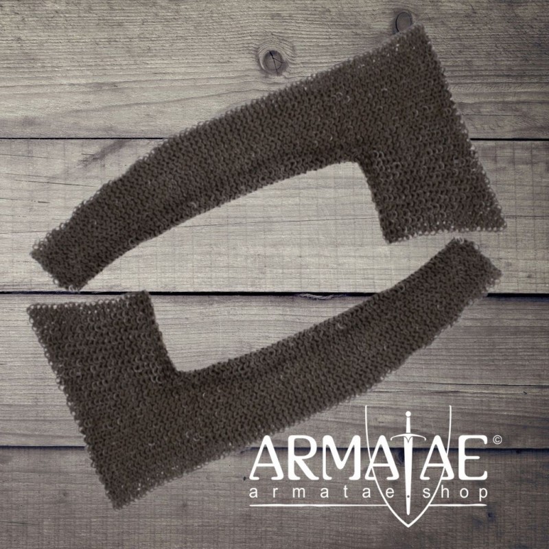 Diese Voiders, wie dieses spätmittelalterliche Paar Armschützer auf Englisch genannt wird, ist per Hand in klassischer 4 in 1 Flechtung durchwegs aus mit Rundkopfnieten vernieteten ID 8 mm Rundringen mit einer Stärke von ca. 1,5 mm hergestellt.