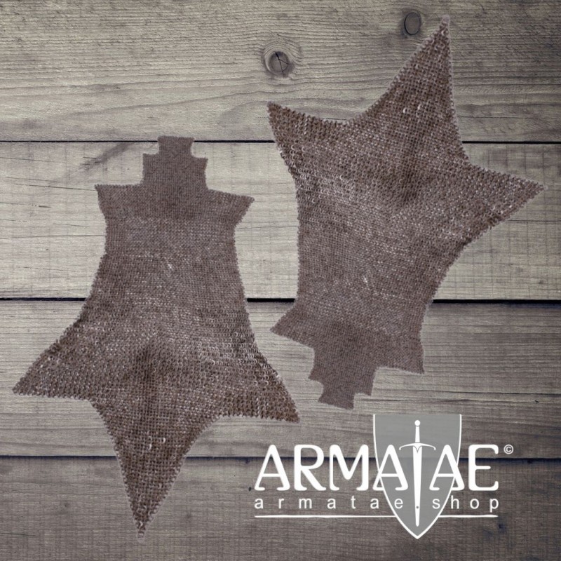 Ein Paar Chausses, wie Kettenbeinlinge auch genannt werden. Chausses dienen als Beinschutz und wurden im Spätmittelalter auch unter Plattenrüstungen getragen, um freibleibende Stellen zu schützen. Kettenbeinlinge laufen über das Schuhwerk und werden angenestelt, mit Lederbändern oder Draht aufgebunden, oder können fix aufgenäht werden. Bedingt durch die individuellen Befestigungsarten liegt  daher kein Befestigungsmaterial bei.