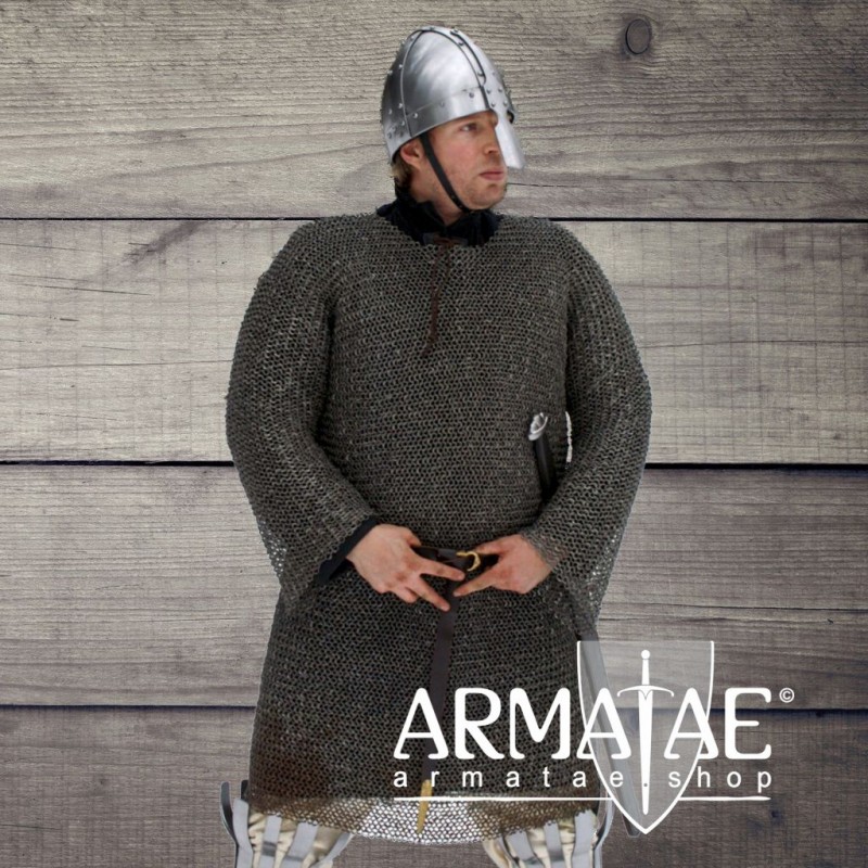 Ein sogenanntes Hauberk - Kettenhemd, welches in etwa bis zu den Knien reicht und lange Ärmel besitzt.