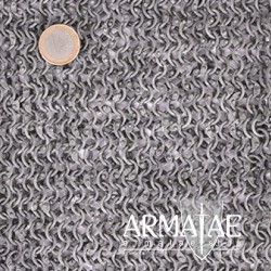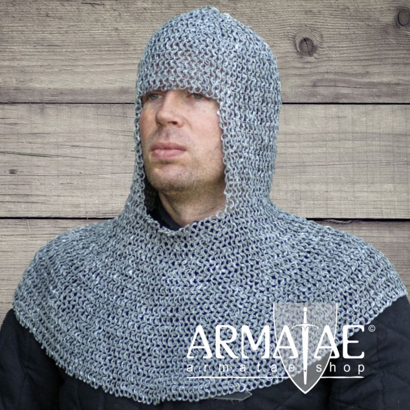Kettenhaube gefertigt aus vernieteten ID 8 mm Aluminium-Rundringen, 1,6 mm stark, mit dunkelgrauer Stahloptik.