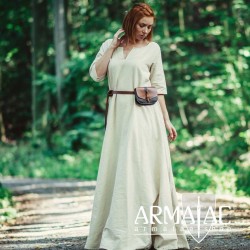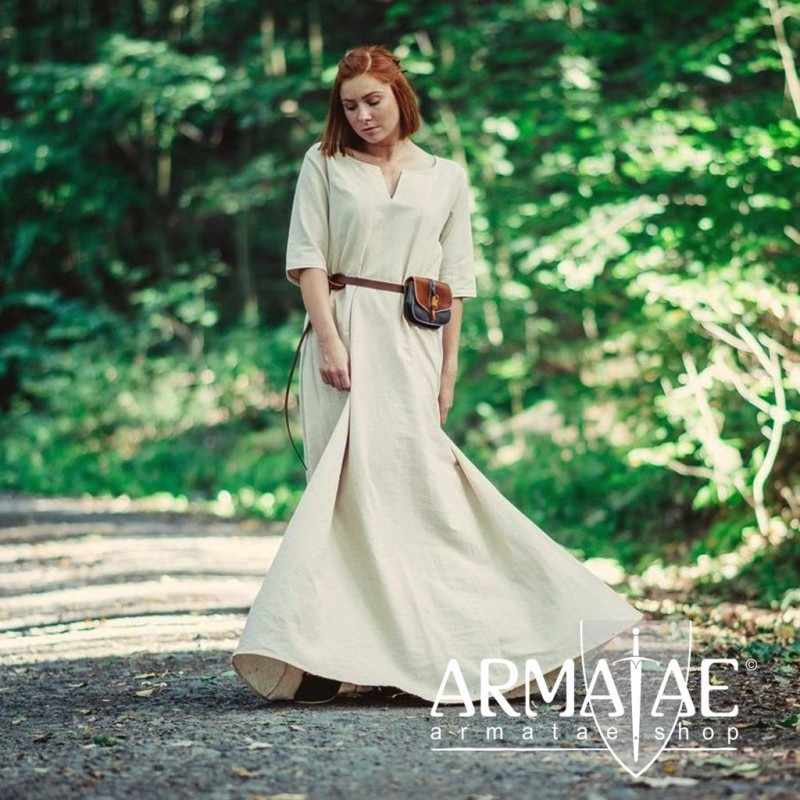 Romantisches, leichtes und sehr bequemes Kleid mit halblangen Ärmel im vollendeten, die Figur vorteilhaft unterstützendem Design. Dieses mittelalterliche Kleid mit zeitlosem Schnitt kann sehr gut mit einem Überkleid oder einem Gürtel kombiniert werden.