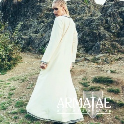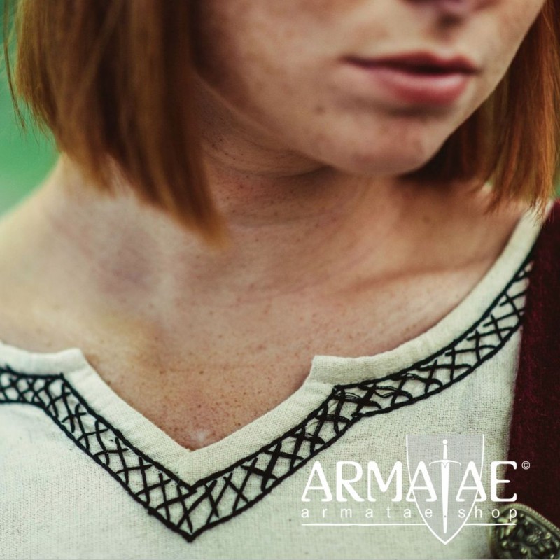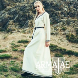 Wunderschönes und aufwendiges Wikinger Kleid mit Handstickereien an allen Konturen (Dekolleté, Ärmel und Saum).