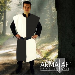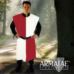 Der Waffenrock Schachbrett ist auf beiden Seiten offen. Vorder- und Hinterteil werden an den Seiten überlappend unter dem Gürtel getragen, diese Variante weist weniger Falten auf und ist angenehmer an- und auszuziehen.