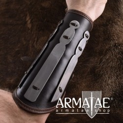 Dieser Armschutz ist nicht nur extrem robust, sondern besitzt eine außerordentlich kampfbetonte Ausstrahlung und ist nicht nur für den kampferfahrenen Wikinger die erste Wahl, sondern auch ein Eyecatcher bei LARP / Live Action Role Playing. Das markante Design macht sich auch sehr gut als hochwertige Kostümierung, auf der Theaterbühne oder bei Film und Fernsehproduktionen.