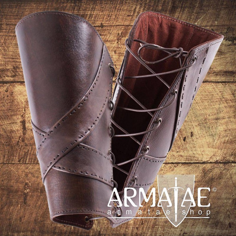 Geeignet für Schaukampf / Reenactment, LARP / Live Action Role Play, für Schwertkampf, Bogenschützen, Theater u.v.m. Sehr schöne und langlebige Bein-Lederstulpen in bestechendem Design gepaart mit erstklassiger Verarbeitung aus vegetabil gegerbtem Rindsleder.