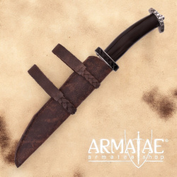 Sehr schöne Rekonstruktion eines frühmittelalterlichen Saxmessers inkl. brauner Lederscheide. Saxmesser wurden vorwiegend als Schneid- Hau- und / oder Schnitzmesser verwendet, kamen jedoch durchwegs auch als Waffe zum Einsatz.