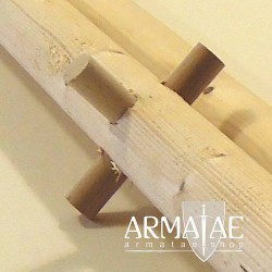 Unsere Gestänge sind aus unbehandeltem Fichtenholz aus dem bayrischen Wald und weiter nicht veredelt, also unbehandelt, wie es auch authentisch ist. Es gab jedoch auch prunkvoll gestaltete Gestänge, bunt bemalt, gedrechselt, auch mit Blattgold, Schnitzereien usw., wo eurer Fantasie keine Grenzen gesetzt sind. Zum besseren Schutz vor Nässe und um dem Verwittern des Holzes vorzubeugen ist es sicher von Vorteil, wenn das komplette Zeltgestänge nachbehandelt wird. Ob nun schön glatt geschliffen und farblos gebeizt, oder gefirnisst, geölt, lackiert u.s.w., das Holz dankt es euch mit längerer Haltbarkeit. Vor allem die Bereiche, welche am Boden stehen, bzw. am Zeltdach der Witterung ausgesetzt sind, sollten sinnvollerweise geschützt werden. Bedingt durch die vielen verschiedenen Möglichkeiten des Holzschutzes und der Gestaltungsmöglichkeiten des Gestänges wird dieses naturbelassen geliefert, so wie es auch im Mittelalter meist zur Anwendung kam und nur so die von euch gewünschte Veredelung des Gestänges möglich bleibt.