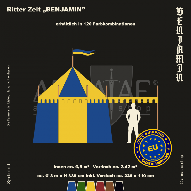 Das Mehrwert-Ritterzelt-Set Benjamin bekommst du in 120 Farbkombinationen.