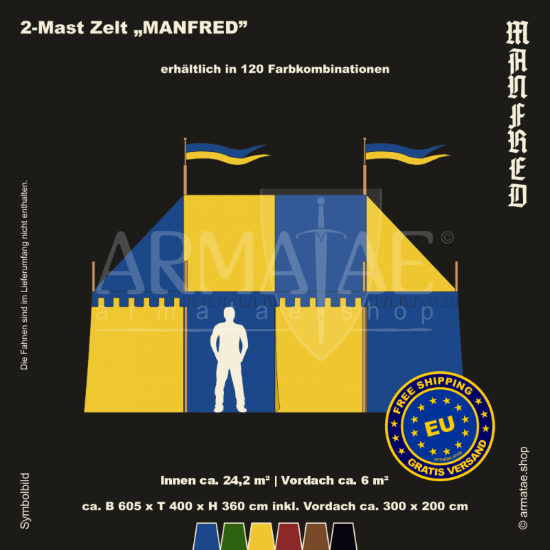 Das Mehrwert-Ritterzelt-Set Manfred bekommst du in 120 Farbkombinationen.