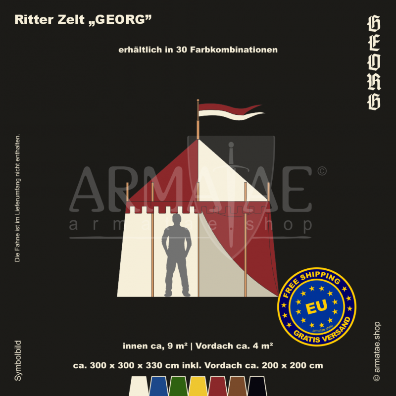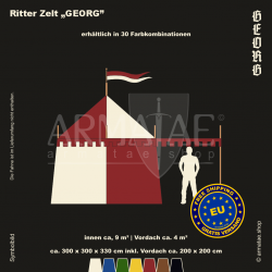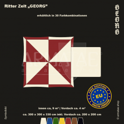 Das universelle Ritterzelt-Set Georg bekommst du in 30 Farbkombinationen, ideal fĂĽr Ritter & Landsknecht. Dank quadratischer Form nutzt man den Platz darin perfekt.
